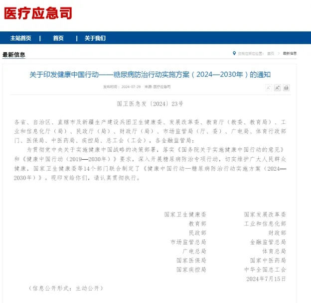 14部門聯合發布2024糖尿病防治行動實施方案